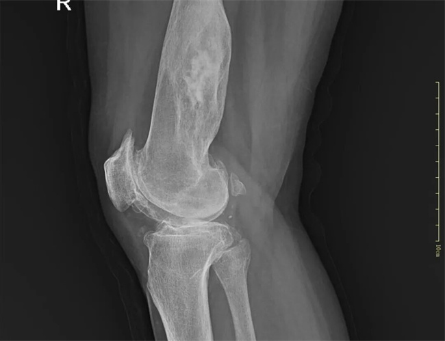 二、患者郭某某,女,59岁,患者行走跛行,右膝髌骨周围压疼明显活动受限20天余。为求进一步治疗,来到我院请专家会诊,通过各位专家会诊查体、查看影像资料并细致认真的分析后,诊断为:1.右膝关节骨性关节炎2.右股骨下段内生软骨瘤病。建议:住院保守治疗。