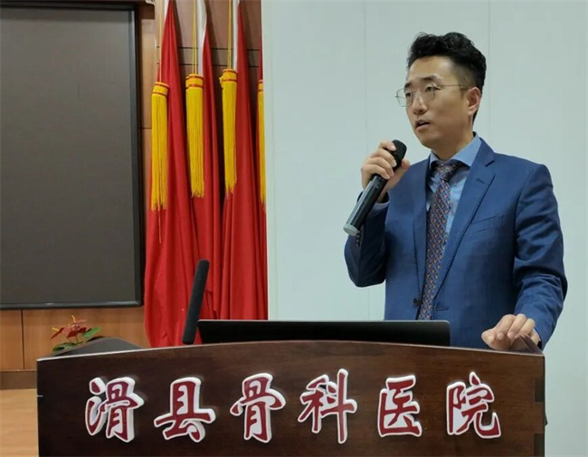 滑县骨科医院党总支书记明新杰首先对崔全军教授一行的到来表达了诚挚的欢迎与感谢。他向三位教授介绍了医院的发展概况:医院根植于360多年的“黄塔膏药”与“明氏正骨”传承,现已发展成为一家国家三级骨伤医院,并拥有“中华老字号”、“非物质文化遗产”,“国家药物临床试验机构”、“国家医疗器械临床试验机构”、“多个专业学会主委和副主委单位”等多项重要资质。他强调医院坚持中西医结合发展模式,在微创技术、伊里扎洛夫技术等方面均取得了丰硕的科研成果。最后,他表示本次研讨会必将为医院诊疗水平的提升注入新的强劲动力,并再次对各位教授致以美好的祝福。