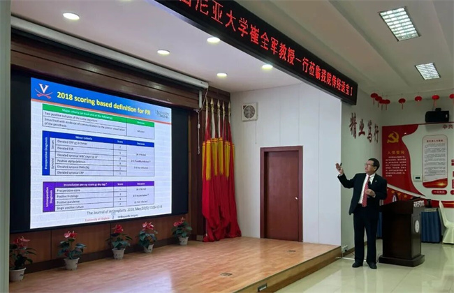 崔全军教授在我院四楼会议室,开展了题为“关节置换进展及人工关节感染的诊断和治疗”的专题研讨,我院百余名医生参会。