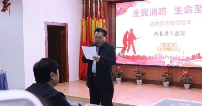 11月14日下午,滑县骨科医院组织进行2025年第四季度消防培训。本次培训旨在加强员工的消防意识,提高应对火灾和紧急情况的能力,确保医院的消防安全,医院领导明新杰及各科室新入职员工、安全员参会。