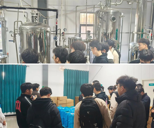最后,同学们参观了医院的制剂中心。滑县骨科医院以黄塔膏药为基础,研制出了一系列中药制剂。在制剂中心大家参观了膏剂、搽剂、颗粒剂、丸剂(水丸)、散剂、硬胶囊剂、合剂等制剂产品及生产流程。制剂室工作人员详细介绍了“黄塔膏药”从原材料到成品包装、成品检验的每一个环节,其中在制剂中心三楼着重讲解检验团队运用气相色谱仪、液相色谱仪等先进设备检测原材料中有效成分的含量,从而保证黄塔膏药生产质量。