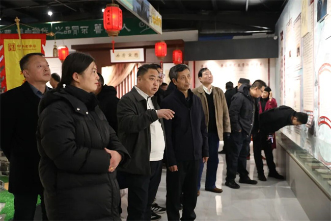 然后,参观了黄塔明氏正骨史馆,讲解员介绍了我院黄塔膏药近年来相关科研成果,其中提到在去年2月份黄塔膏药被国家商务部等五部委授予“中华老字号”。结合馆内陈设的实物和照片讲解员详细讲解了黄塔膏药、黄塔明氏正骨历经15代传承、360多年的发展历史,同时回顾了滑县骨科医院建院42年的发展历程。