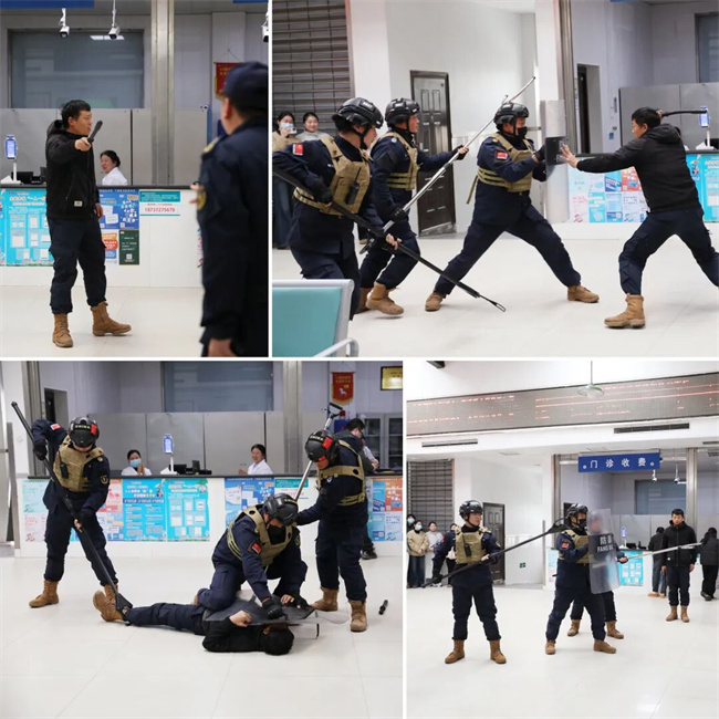 本次培训特邀金卫保安公司的专业安保团队到场进行演示与指导。培训内容紧密结合医院实际安全需求,分为知识讲解与实战演练两个核心环节。