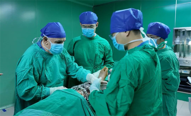 安纳多利教授在手术室,指导多台应用伊里扎洛夫技术骨科手术。
