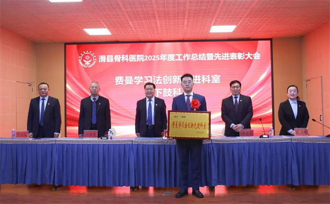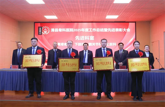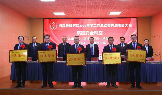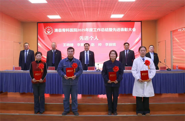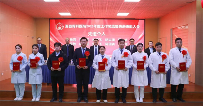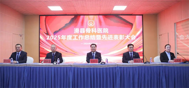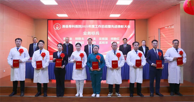 2026年2月6日下午,滑县骨科医院在职工生活区会议室隆重召开2025年度工作总结暨先进表彰大会。医院党总支书记明新杰,行政院长明新会,工会主席明新堂,副院长马芳静,院党总支副书记李学江出席会议。医院专家明新广教授、姚灵生教授受邀参会,各科室中层干部、职工代表以及受表彰的先进集体与个人共计150余人齐聚一堂,共同回顾奋斗历程,表彰先进典型,凝聚前行力量,擘画发展新篇。